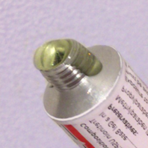 白い容器に入っているのは院内で調合した1.2%トレチノインで、真っ黄色です。チューブの24倍の濃さですが、調べた限り世界一濃いトレチノインです。
